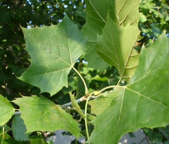 Sycamore leaves. Photo by Allen Bridgman, South Carolina Department of Natural Resources, Bugwood.org